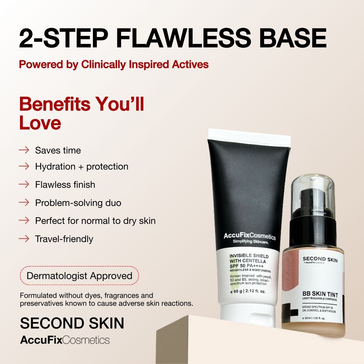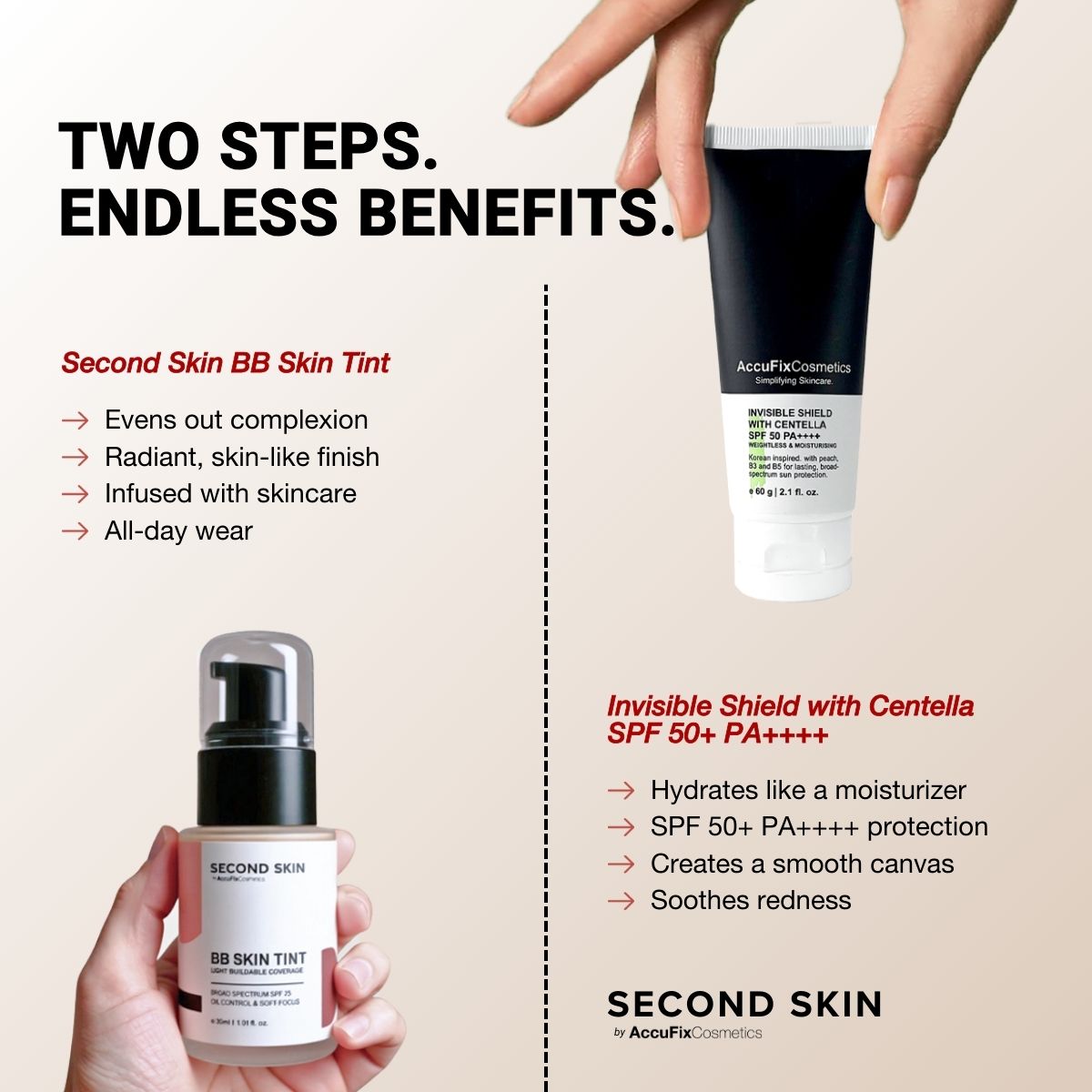 ✔️ Includes: 1x Invisible Shield with Centella SPF 50, 1x Second Skin BB Skin Tint
