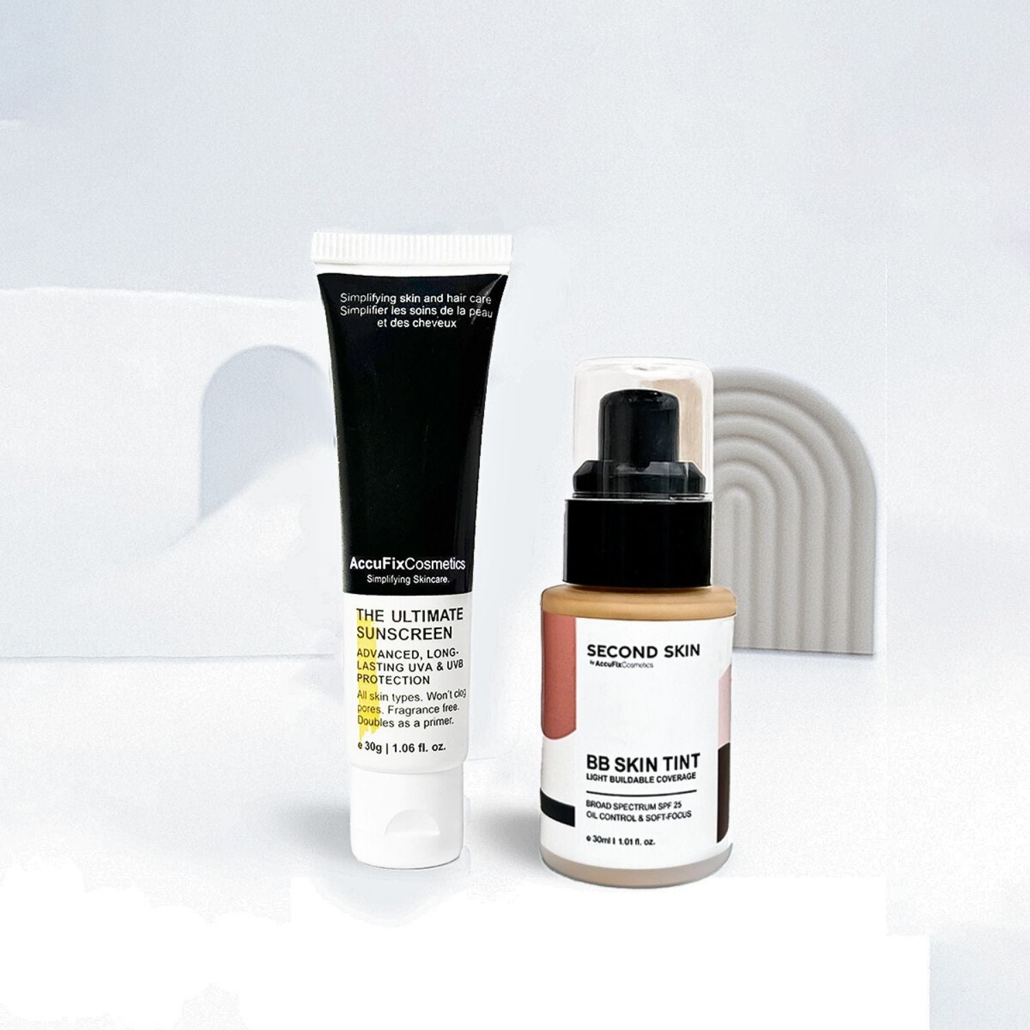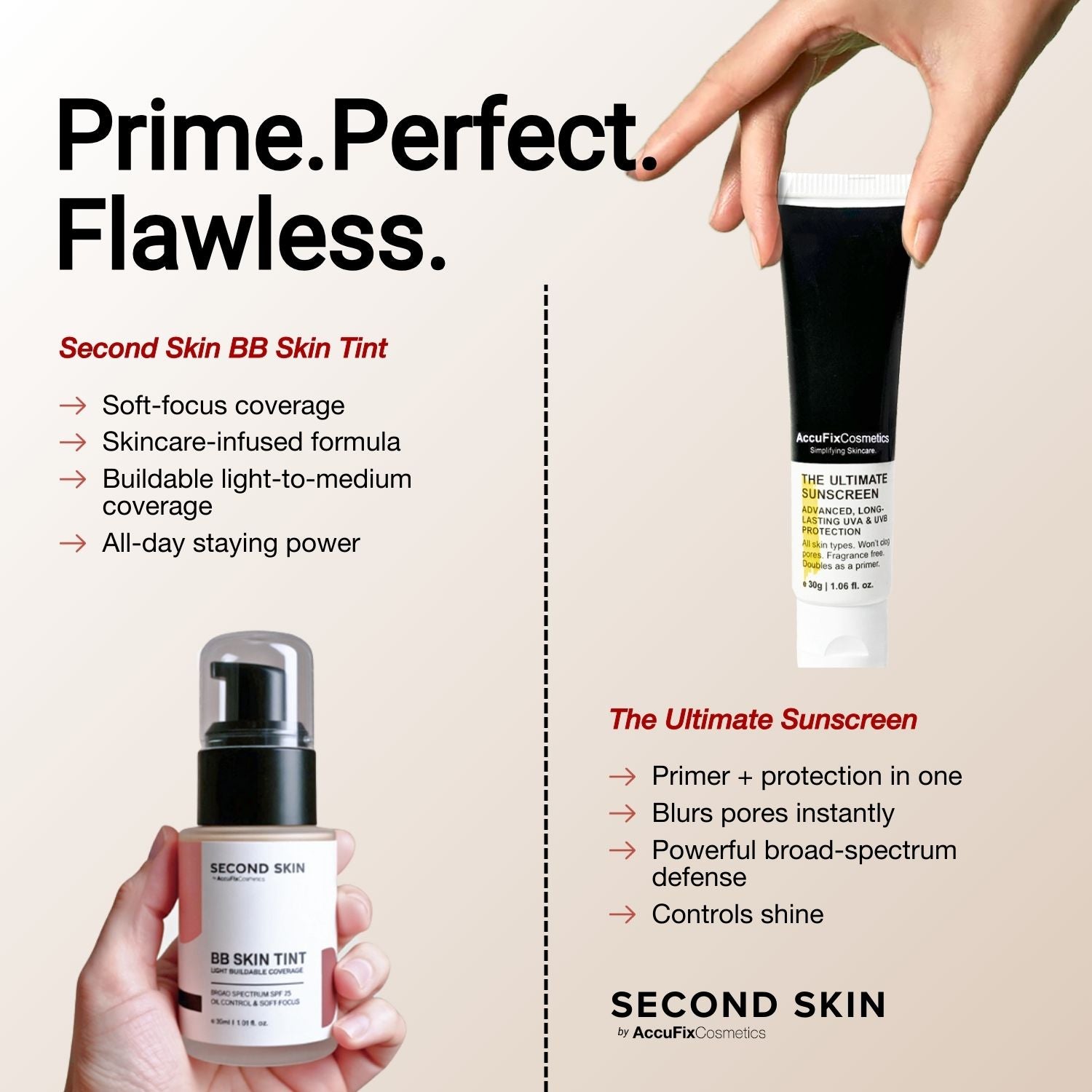 ✔️ Includes: 1x The Ultimate Sunscreen (Primer + SPF), 1x Second Skin BB Tint