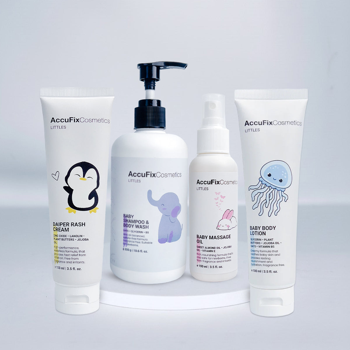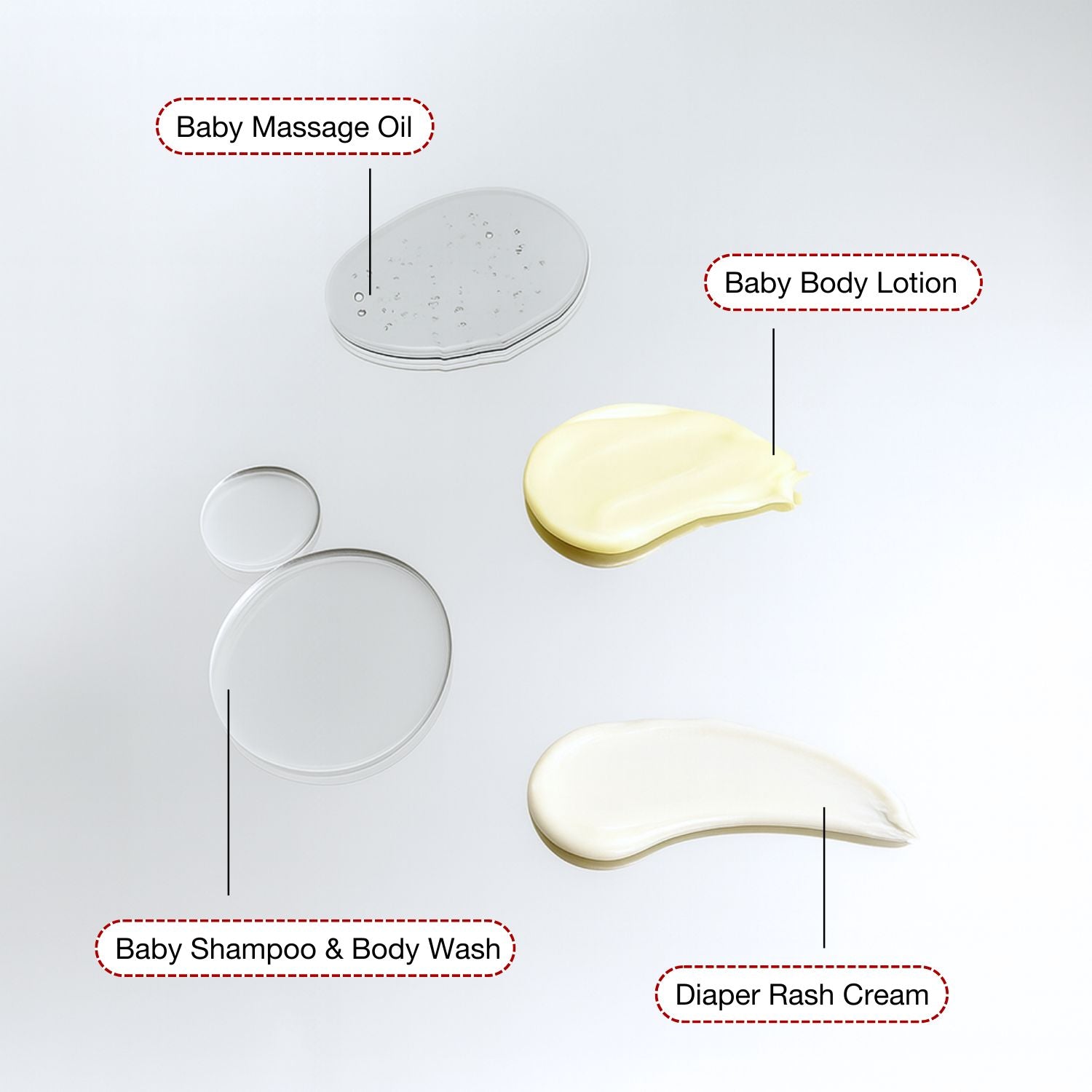 ✔️ Bundle includes: 1x Baby Scalp & Body Wash, 1x Baby Lotion, 1x Baby Massage Oil, 1x Diaper Rash Cream.