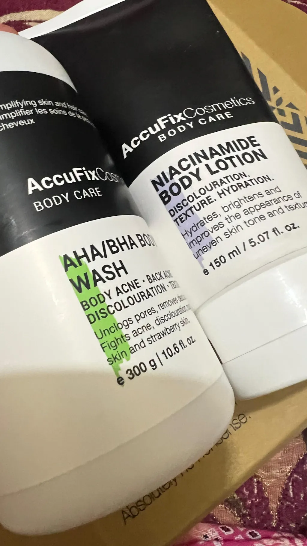 Then I came across Accufix Cosmetics and decided to try their Niacinamide Body Lotion & AHA/BHA Body Wash — and oh my God, these are truly magical! 🌸