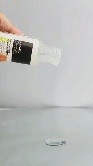 MCT Oil is made from capric and caprylic triglycerides, which are medium-chain fatty acids derived from coconut or palm oil. These triglycerides are known for their lightweight, non-greasy texture and quick absorption into the skin, making them ideal for moisturizing without clogging pores.