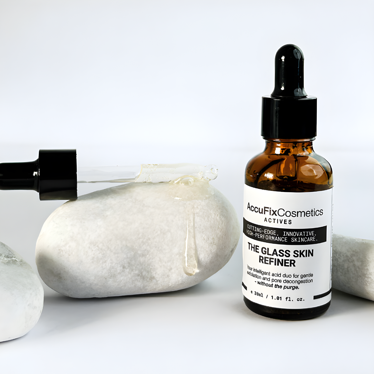 Inspired by next-generation dermatological exfoliation, AccuFix’s Glass Skin Refiner delivers the pore-clearing power of salicylic acid with LHA technology — working 8x slower to match skin’s natural renewal cycle and avoid harsh purging.
