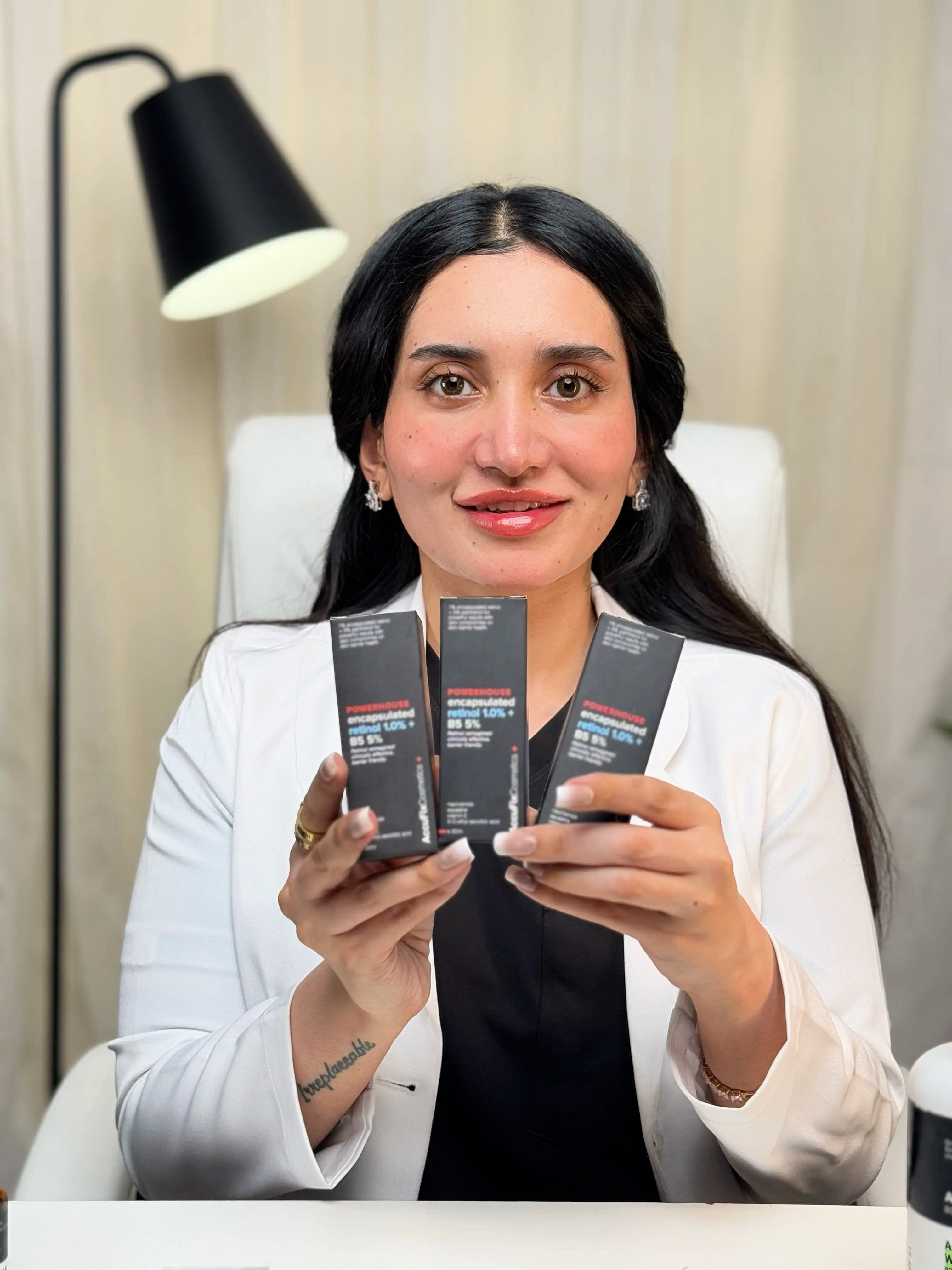 ✔️ Key Ingredients: 1% Encapsulated Retinol, 5% Panthenol (B5), 2% Niacinamide (B3), Vitamin C (3-O Ethyl Ascorbic Acid)