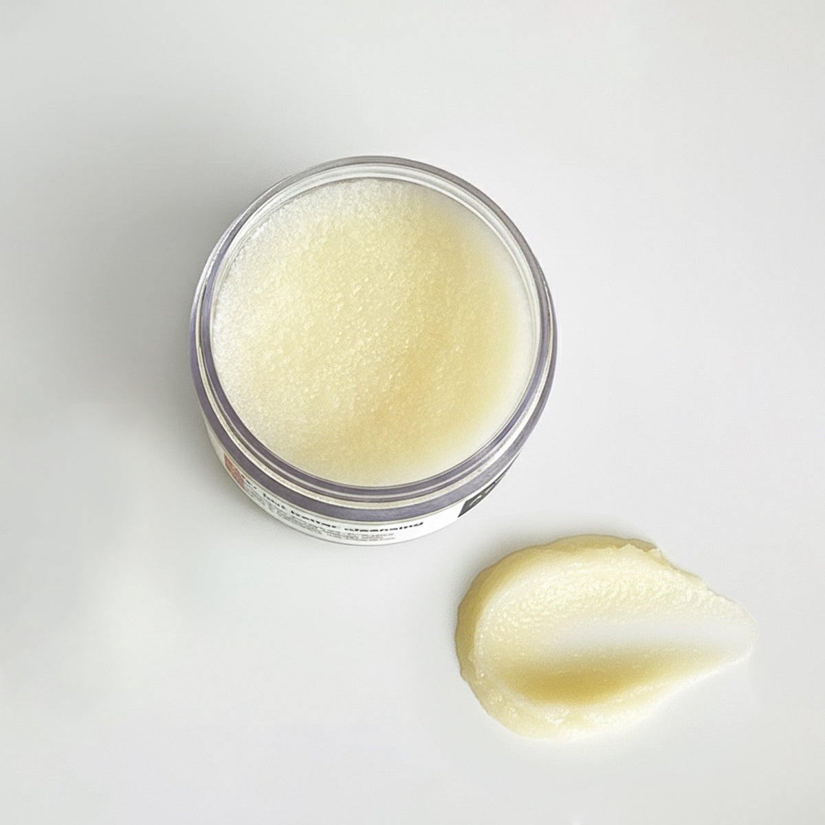 Our Butter But Better Cleansing Balm is a luxurious makeup remover and nourishing cleanser in one. It gently dissolves even the most stubborn makeup, sunscreen, and daily buildup, leaving your skin thoroughly clean and hydrated. On contact, this cleansing balm melts into a silky oil that glides effortlessly across the skin. When water is added, it emulsifies into a lightweight milky texture that rinses off easily—no need for cotton pads.